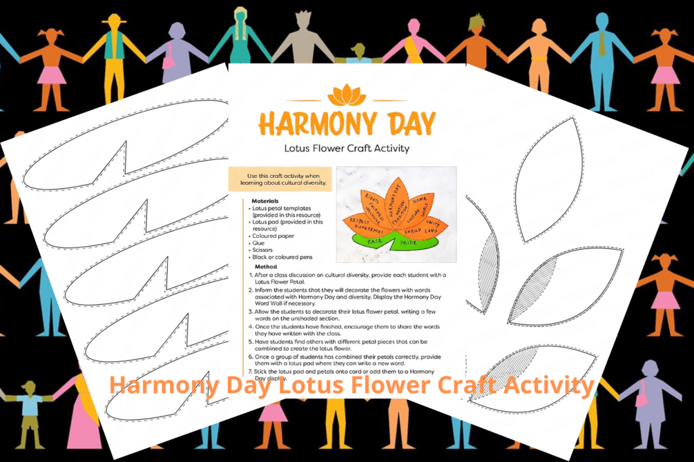 Many civilizations, including those that observe Harmony Day, place great symbolic value on the lotus flower. Its symbolism frequently corresponds with ideas of oneness, resilience, enlightenment, and purity. In relation to Harmony Day, the lotus blossom can be understood as follows: